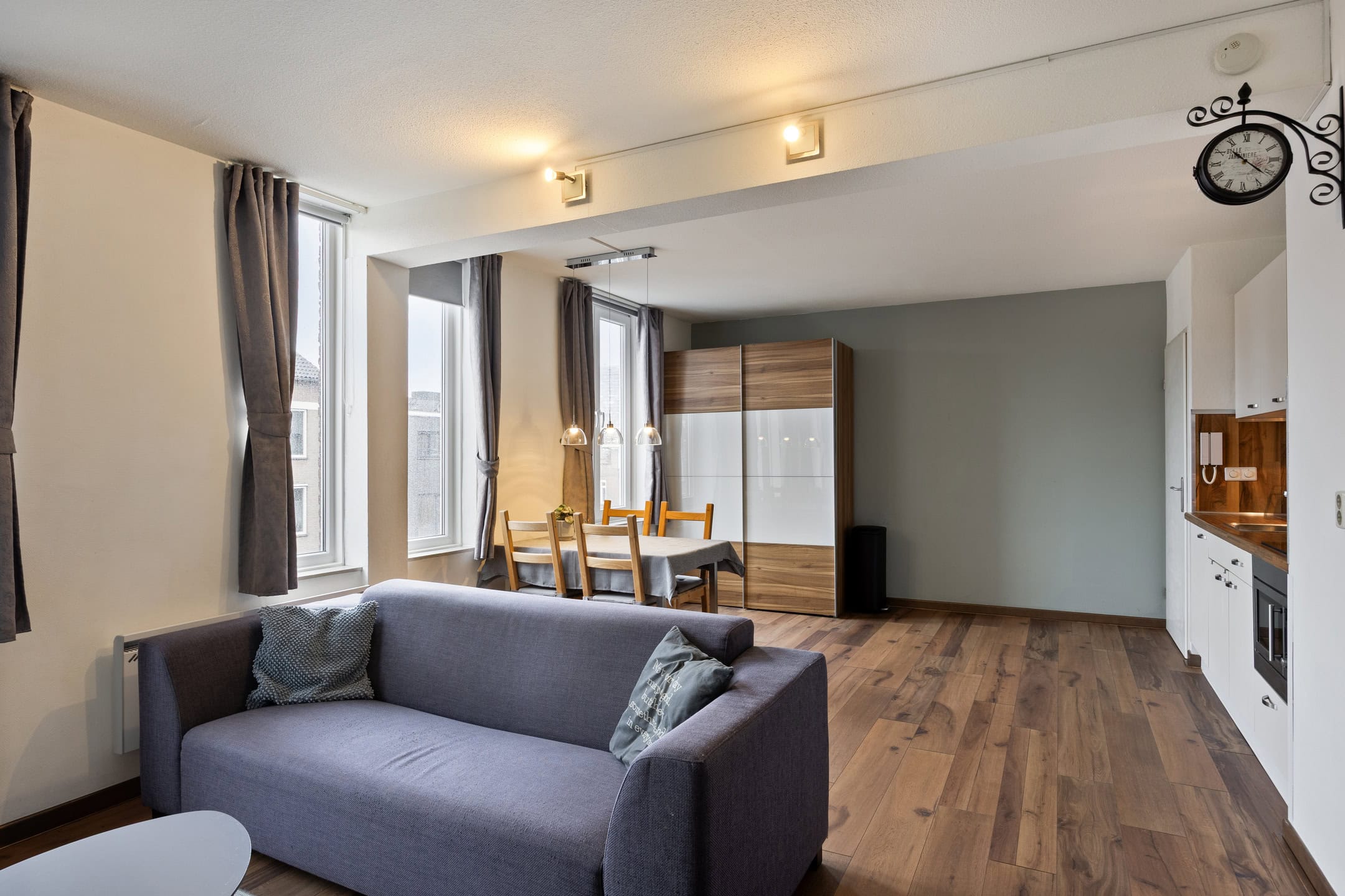 De woon-/slaapkamer vormt het hart van het appartement. Deze ruimte beschikt over een nette en eigentijdse pvc vloer, elektrische radiatoren, een airco die ook verwarmt en een zeer prettige lichtinval door de vele raampartijen, waardoor een aangename leefomgeving ontstaat.