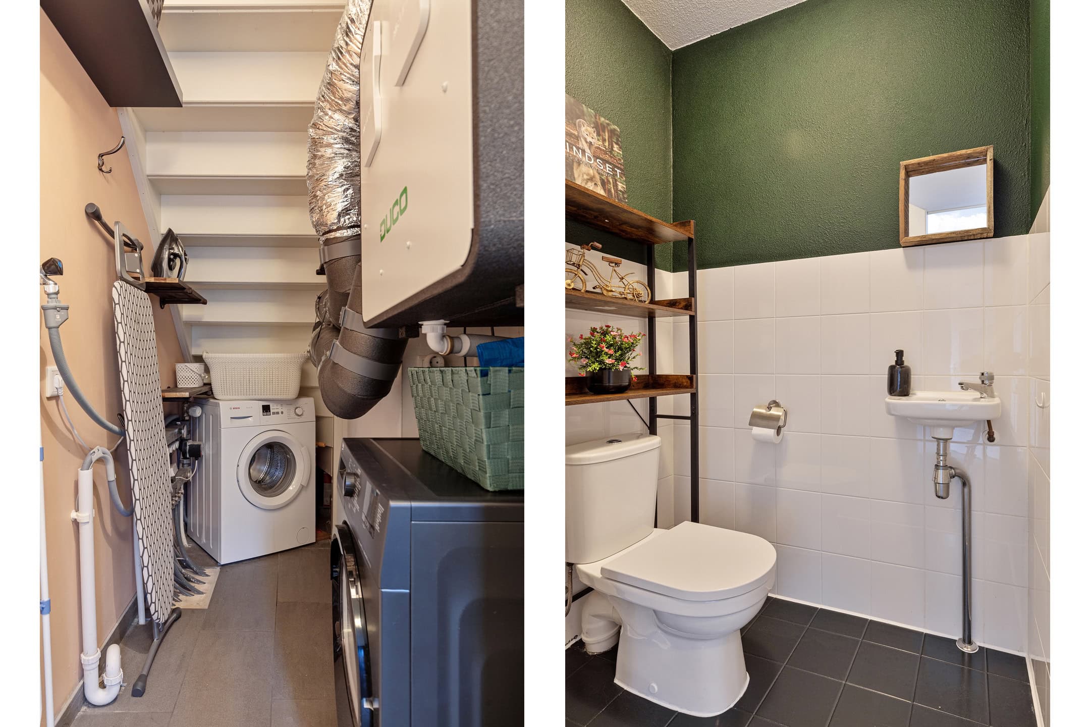 Daarnaast bevindt zich op de begane grond een praktische inpandige berging met wasmachineaansluiting en opstelling van de WTW-unit.