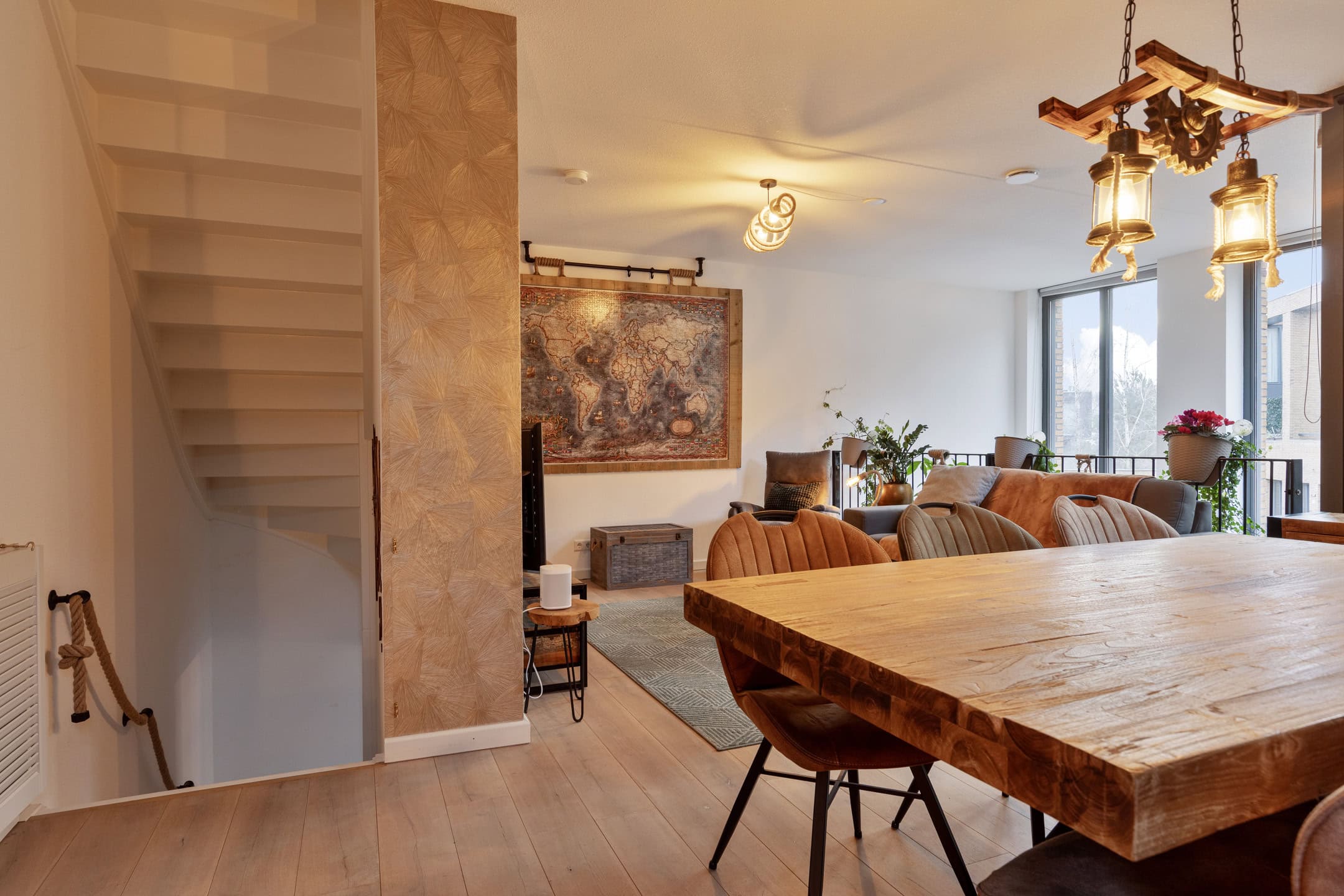 Op de eerste verdieping bevindt zich de royale en goed indeelbare woonkamer van circa 25 m². De ruimte is afgewerkt met een houten vloer en strak gestucte wanden en plafonds, wat zorgt voor een moderne en warme uitstraling.