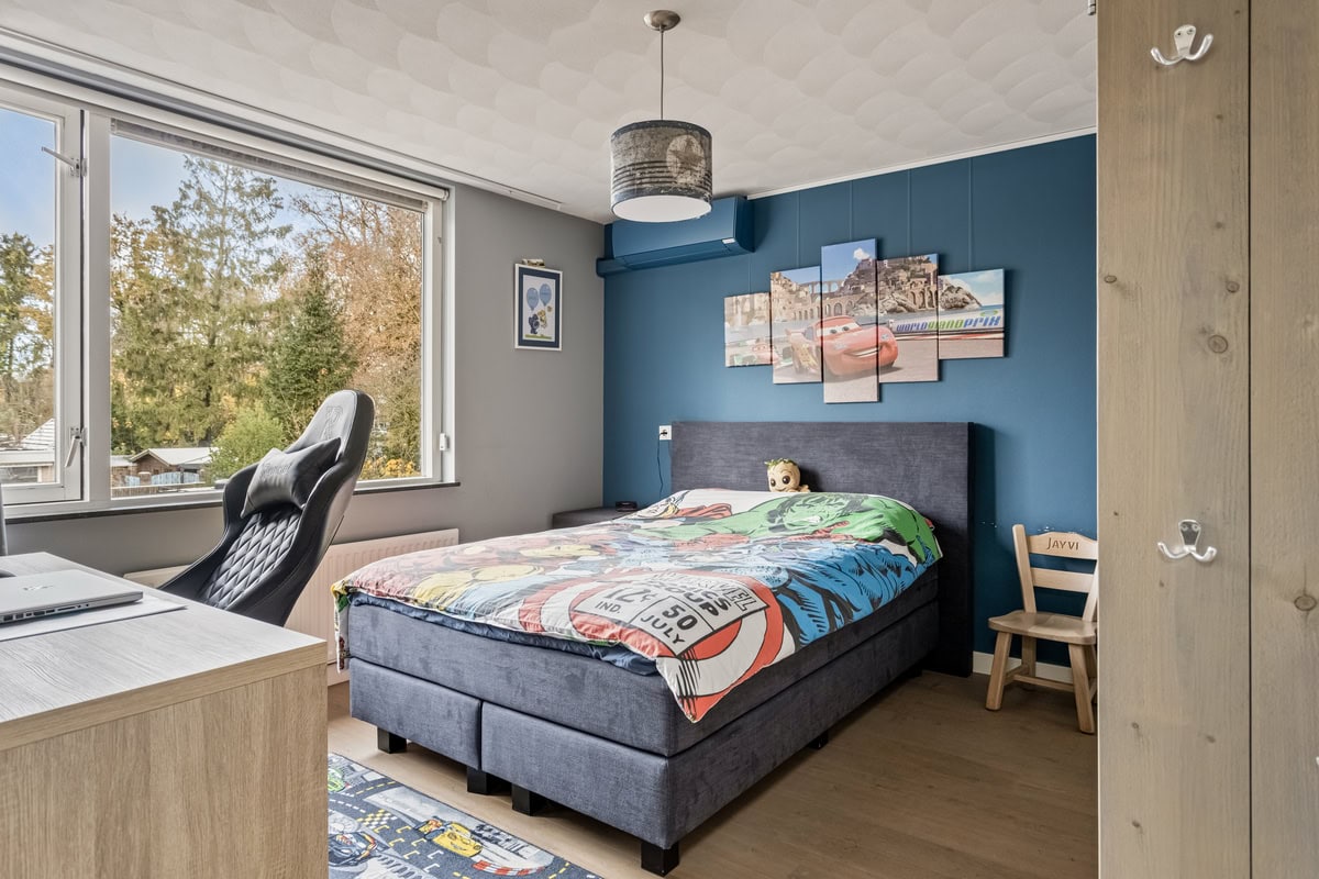 De overloop, met een stijlvolle houten vloer, leidt naar drie ruime slaapkamers. Slaapkamer 1 ligt aan de achterzijde en heeft een tv-aansluiting. Slaapkamers 2 en 3 bieden eveneens een nette afwerking met houten vloeren en strak stucwerk. De slaapkamers aan de achterzijde beschikken over elektrische rolluiken. De badkamer (2009) is luxe en volledig betegeld, met een ruime inloopdouche, hangcloset, dubbele wastafel, inbouwspots en mechanische afzuiging.